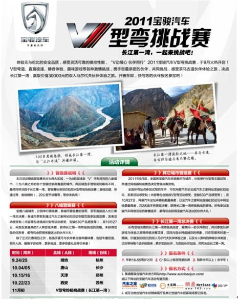 您想酣暢淋漓的進行一場深度試駕嗎?您希望體驗駕駛過程中預(yù)防式安全系統(tǒng)為您的行車安全帶來的無徽不至的關(guān)懷嗎?您對自己的車技有信心嗎?您認為自己是開車高手嗎?這個秋天您想的、驕傲的、得意的,都可以在這里展示——那就是2011寶駿汽車V型彎挑戰(zhàn)賽!