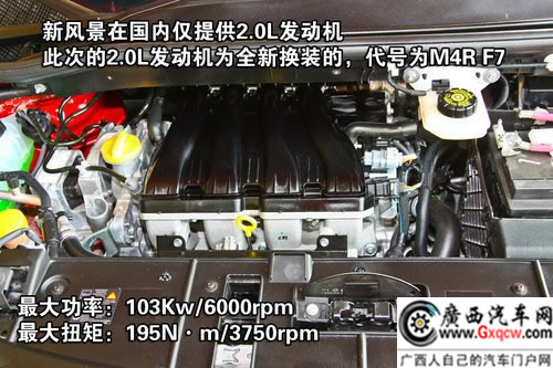 新風景在國外有多種動力選擇,但進口到國內(nèi)則僅有2.0L車型。和老款的2.0L發(fā)動機有所不同,此次的新風景換裝了新款的2.0L發(fā)動機,最大功率可達103Kw/6000rpm,最大扭矩為195N•m/3750rpm,滿足于日常行駛還是夠用的。