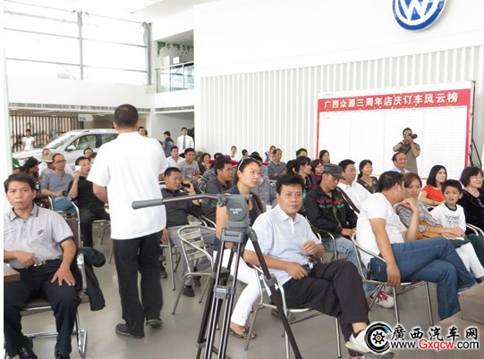 10月26日,上海大眾廣西眾源店開展了三周年店慶五重好禮感恩回饋活動。當日現場氣氛十分火爆,一大早展廳內已經呈現了一番熱鬧景象,到中午已經沒有閑置的洽談桌椅,場內已經是高朋滿座、賓客盈門的景象。許多朋友表示,在網上看到三周年五重禮的促銷宣傳信息慕名而來,想趕上三周年活動的順風車以物超所值的價格訂下自己的心儀愛車。據記者了解,一天活動下來,展廳來店看車客戶達到約400-500組,當日成交58個新車訂單。