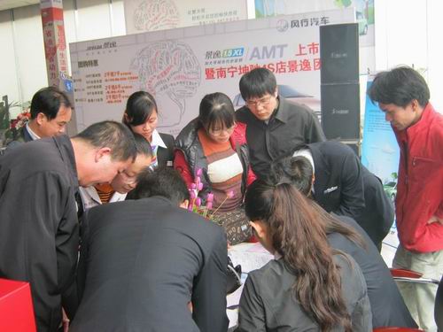 3月20日下午2:30分,2011款景逸1.5AMT上市暨南寧坤馳景逸日?qǐng)F(tuán)購(gòu)活動(dòng)在秀廂大道南寧坤馳展廳如期舉行。南寧坤馳是東風(fēng)風(fēng)行品牌授權(quán)4S店,經(jīng)營(yíng)風(fēng)行品牌旗下所有車(chē)型,同時(shí)在廣西**銷售風(fēng)行汽車(chē)菱智車(chē)型Q2、Q8、CMV車(chē)型,也是風(fēng)行品牌廣西地區(qū)**一家“車(chē)貸通”辦理經(jīng)銷商。
