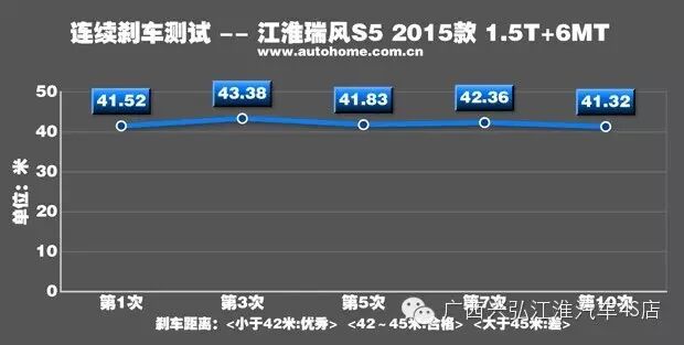 制動成績41.83米,比同級別對手略強一些,但仍舊有提升的空間,主要是輪胎抓地力比較差。制動中剎車踏板沒有明顯的彈腳感,較軟的懸架對于車身支撐不是很到位。