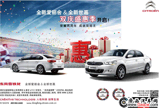 榮耀兩周年,不僅是雪鐵龍雙杰全新愛麗舍和全新世嘉產(chǎn)品力所致,更是源于消費者的信賴有加,值此雙慶盛惠季,各種禮遇不斷,各位心動不如行動。